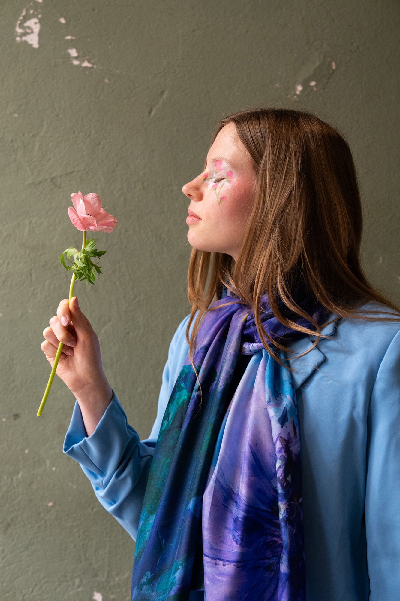 Issue de notre collaboration exclusive avec l’artiste lyonnais Clément Montolio pour l’exposition Primavera, cette écharpe transpose une œuvre florale délicate. Le motif se déploie dans une symphonie de bleus profonds, de mauves poudrés et de lavande, créant un jardin imaginaire à porter à même la peau.